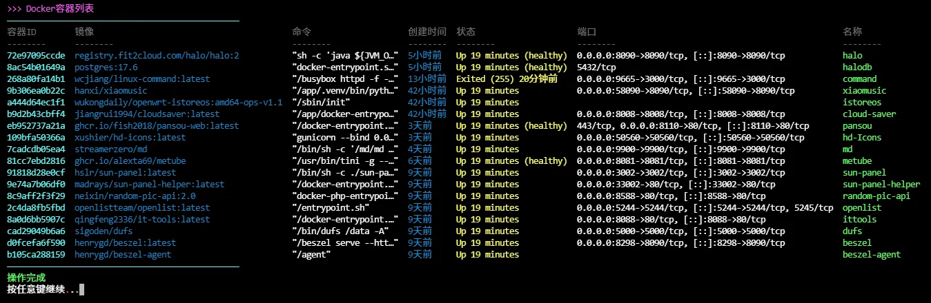 echo -e "${gl_zi}>>> Docker容器列表${gl_bai}"