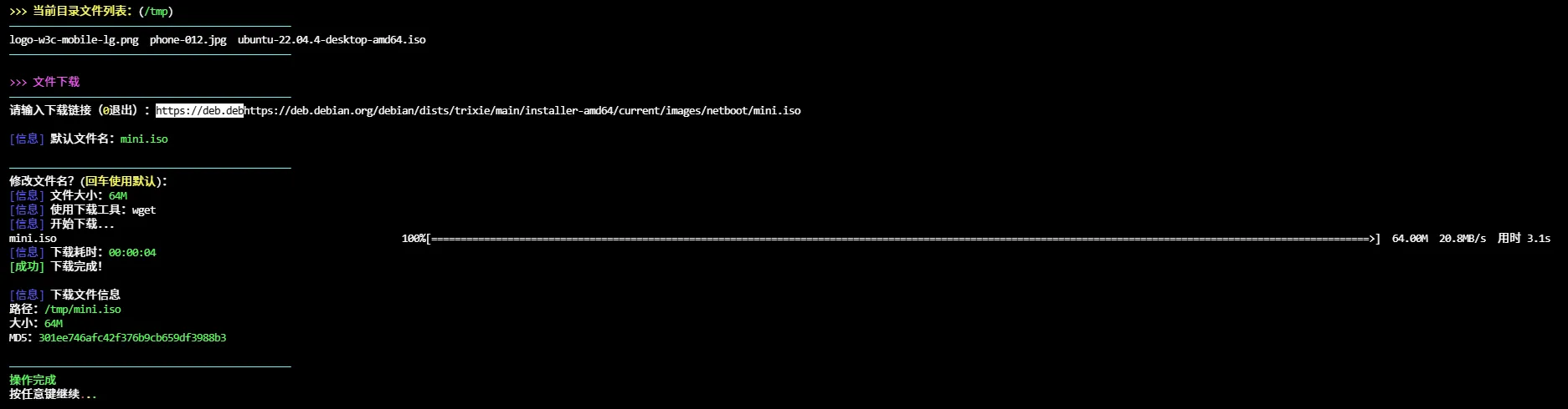 支持断点续传与文件校验、可自动清理重复 URL 前缀的 Linux 终端单文件下载脚本。