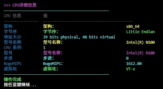echo -e "${gl_zi}>>> CPU详细信息${gl_bai}"