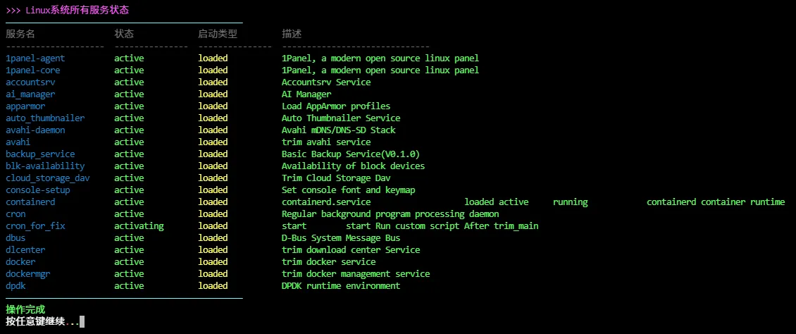 echo -e "${gl_zi}>>> Linux系统所有服务状态${gl_bai}"